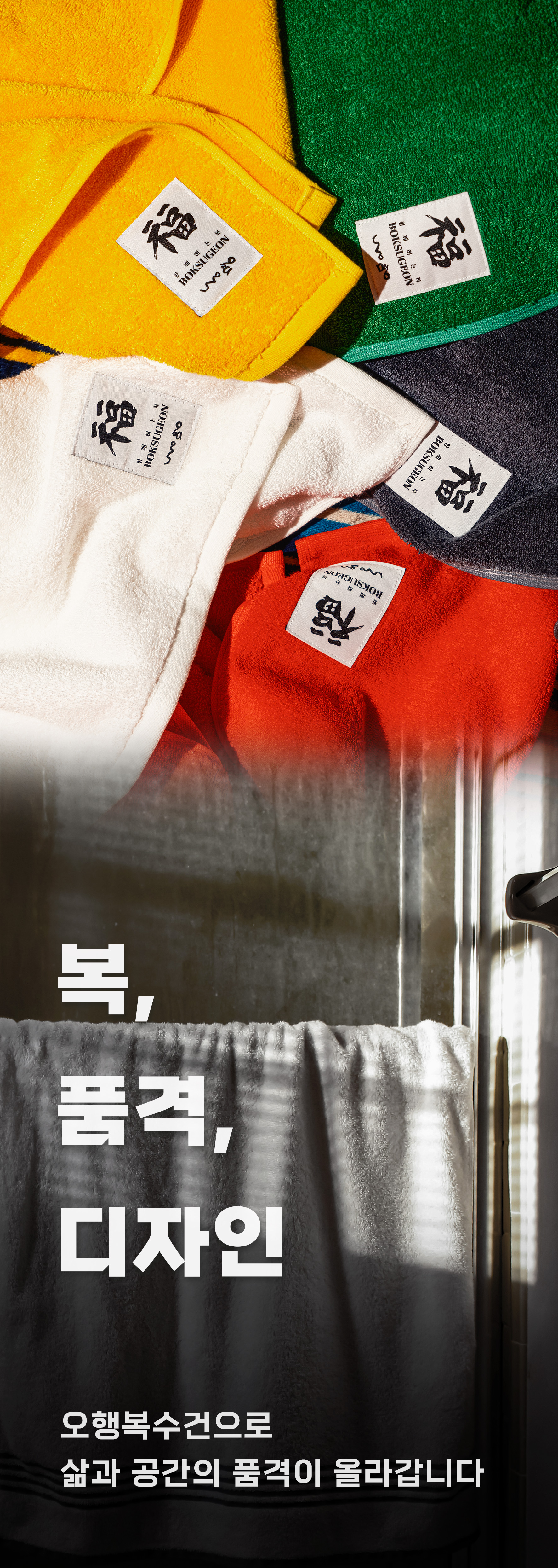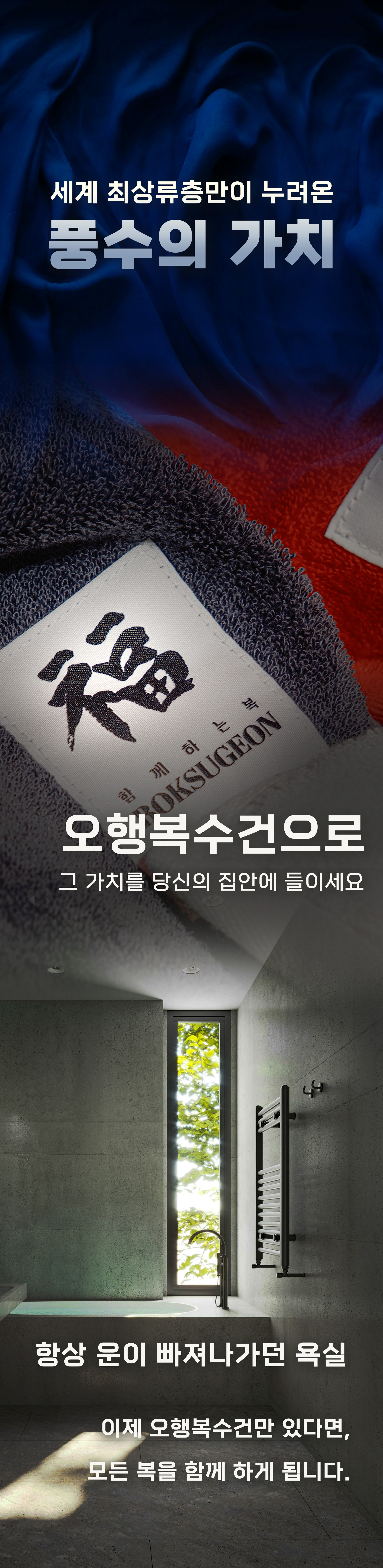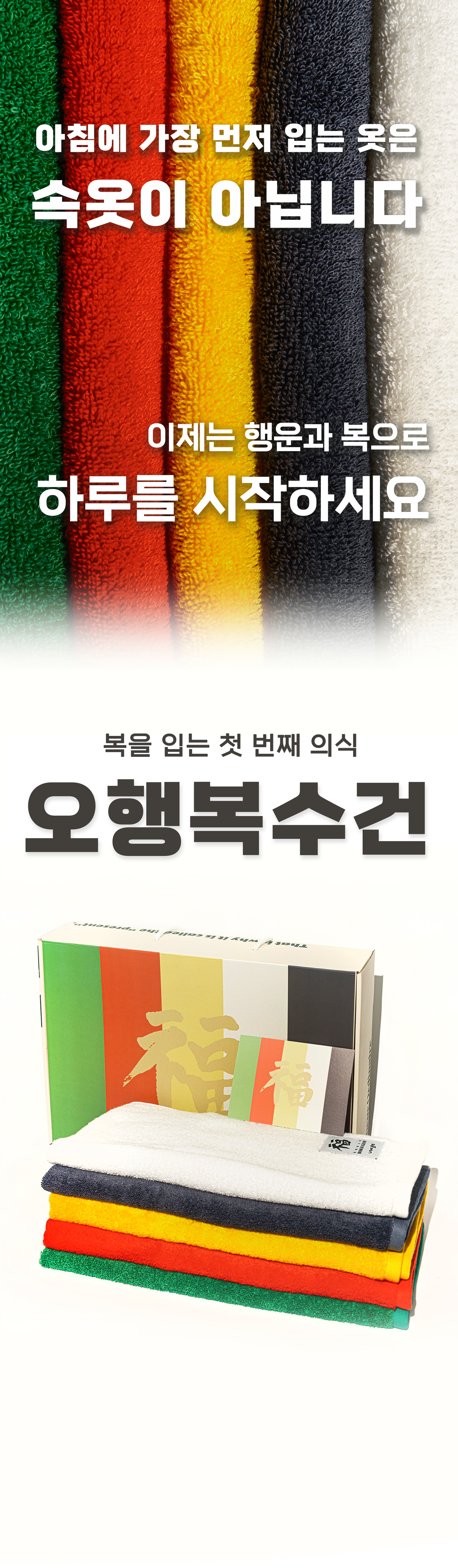 풍수 회사가 만든 국내 유일 프리미엄 오행복수건 / 호텔수건보다 상위 품질, 최고의 풍수실용템 / 국내최고 풍수사의 친필 복 라벨 각인 오행복수건