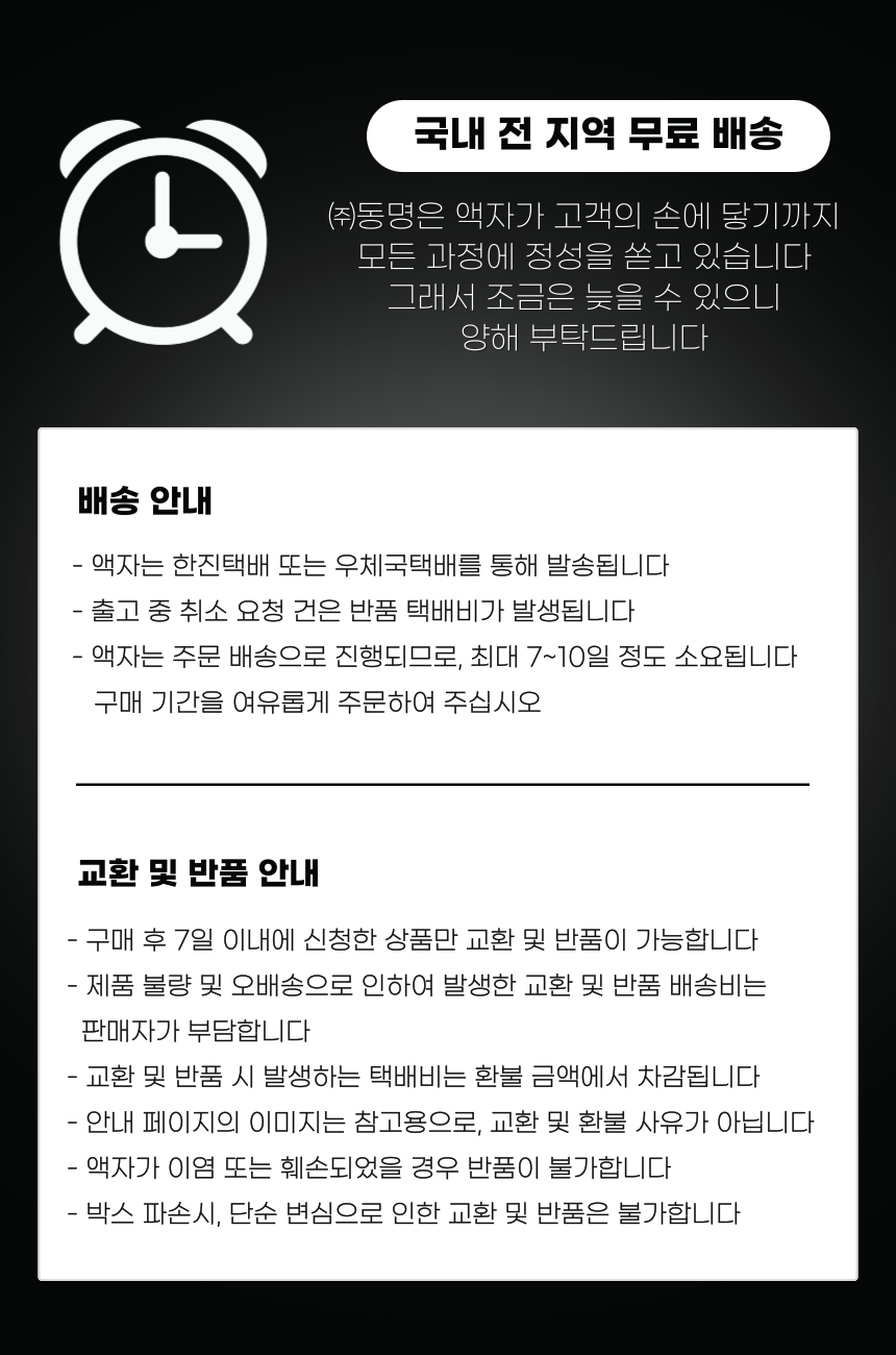 -제품의 경우, 박스가 파손이 되면 단순 변심으로 인한 환불이 불가능합니다.